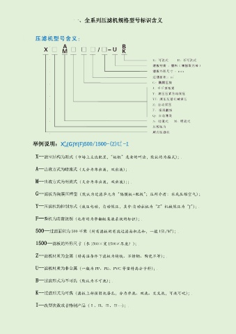 500—过滤面积为 500 平米(所有滤板的有效过滤面积总和,一般 15L/M );
